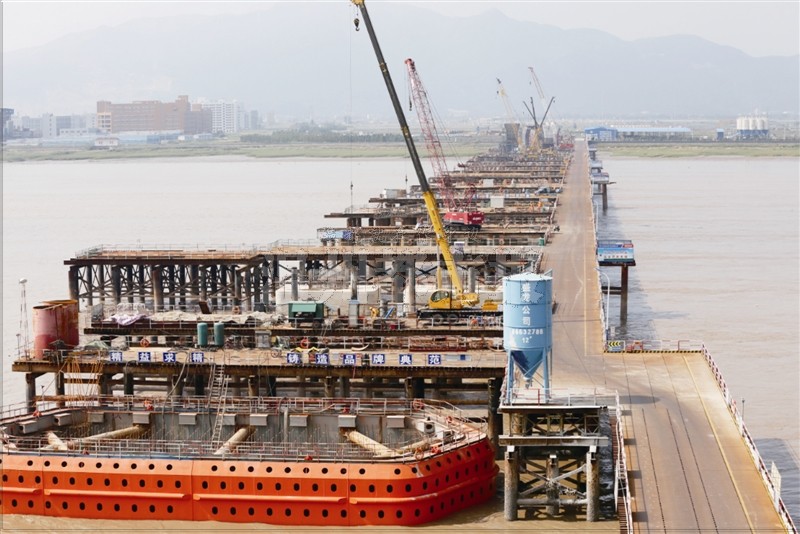 飞云江跨海特大桥 水上582根桩基全部完工