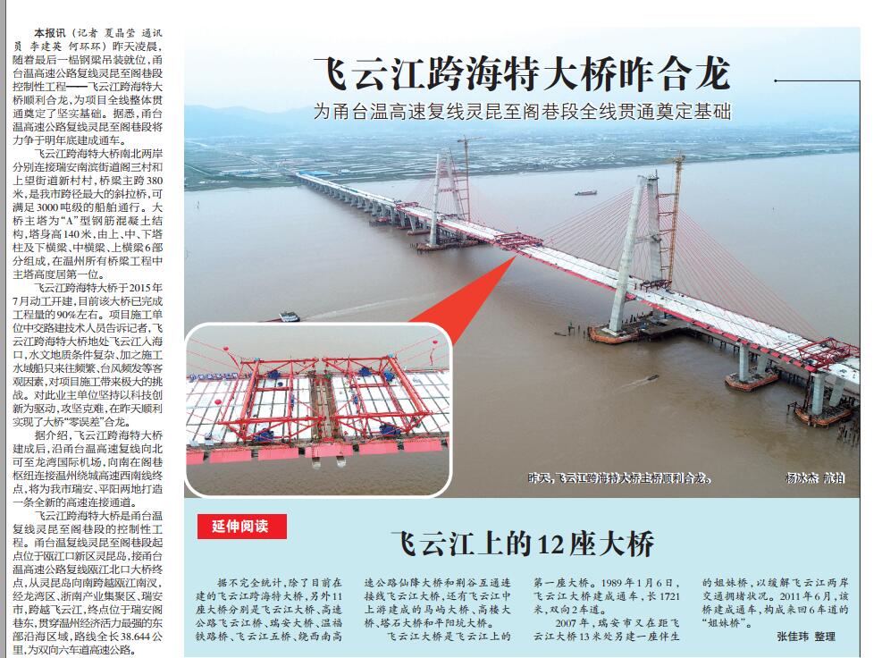 飞云江跨海特大桥昨合龙