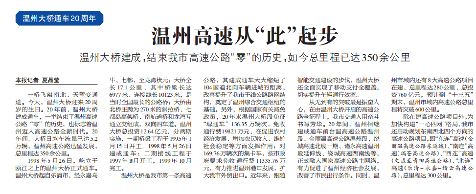 从零到900公里全域高速的期许—— “幸福之旅”看日新月异温州交通网