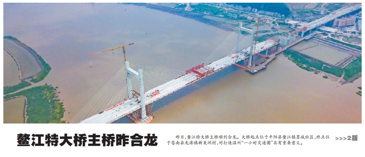 鳌江特大桥昨晨顺利合龙