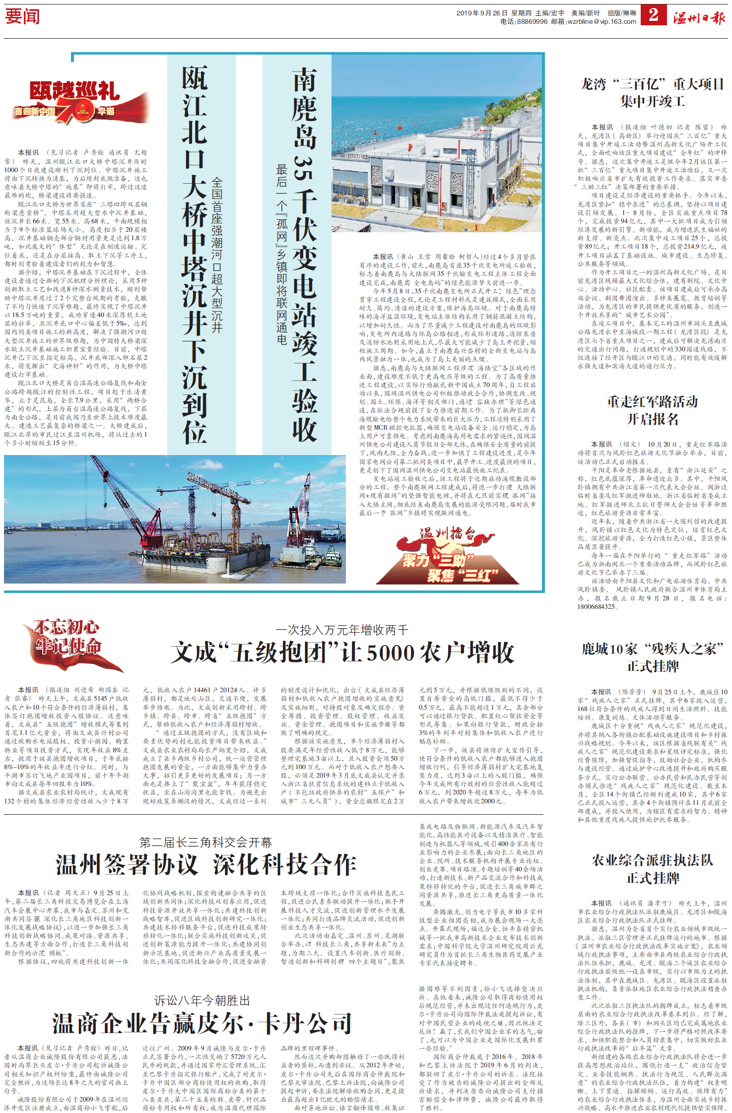 东海神针定风波 温州瓯江北口大桥中塔沉井下沉到位