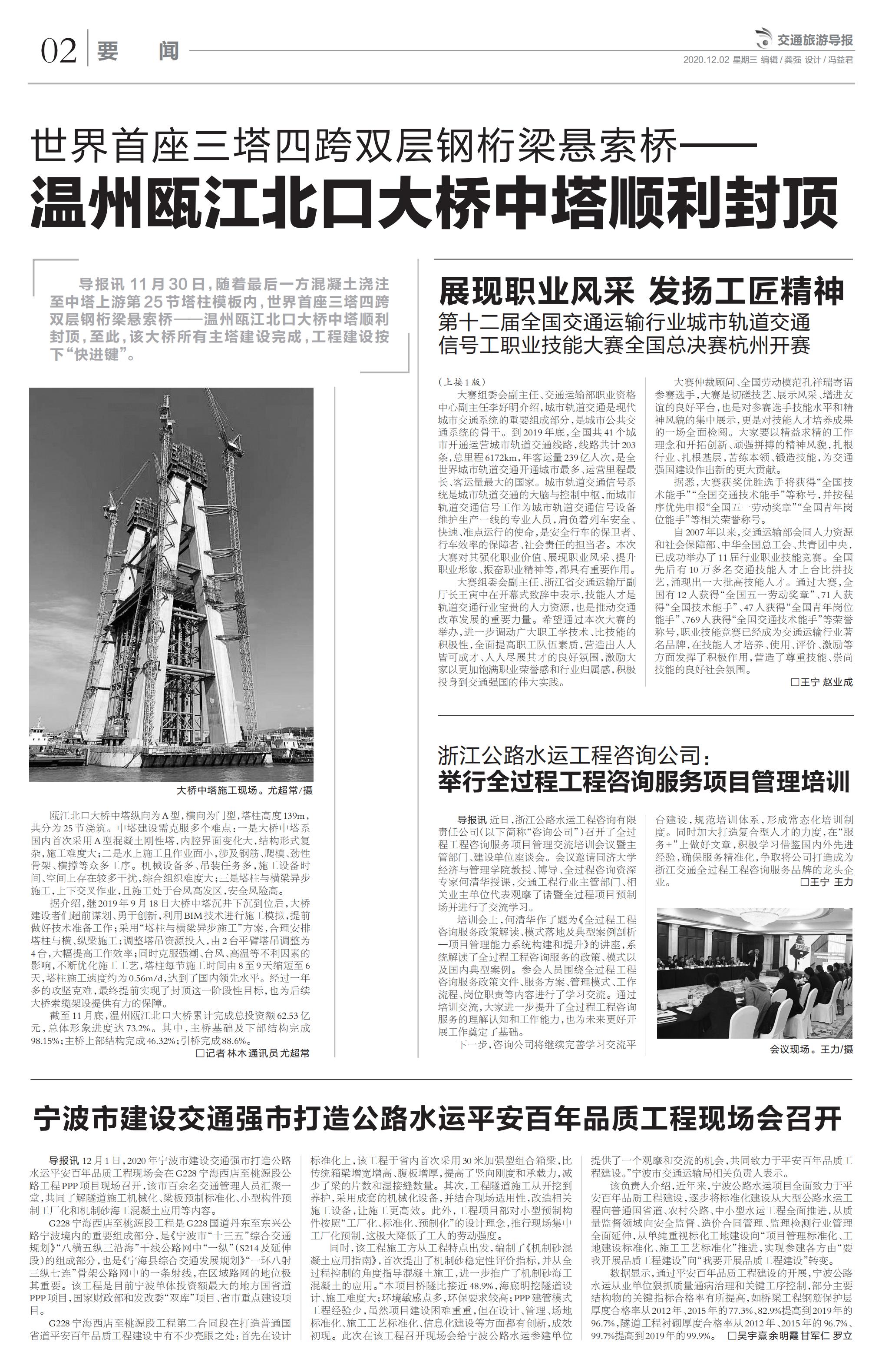 瓯江北口大桥中塔封顶