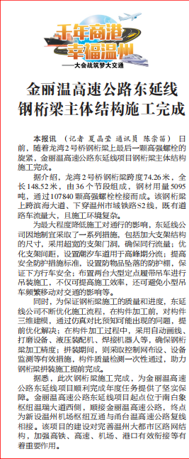 金丽温高速公路东延线钢桁梁主体结构施工完成