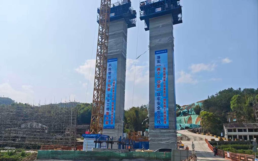 该空心薄壁墩为甘岐大桥关键控制性工程,位于苍南县矾山镇岱岭乡至浦坪乡境内,墩柱设计截面6m×3m,墩高44.198m,相当于15层住宅楼高度。此类高墩施工高度高、技术要求严、安全风险大,对模板体系、混凝土配合比、钢筋安装等环节均提出极高要求,在浙南山区高速建设中极具代表性。