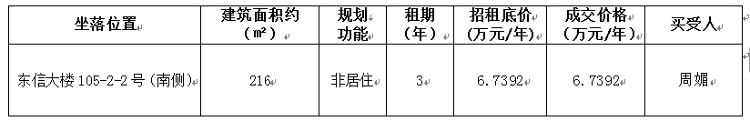 市交发集团温州房地产公司关于温州市鹿城区人民东路东信大楼105-2-2号(南侧)非居住用房三年租赁权(第二次)竞价结果公示
