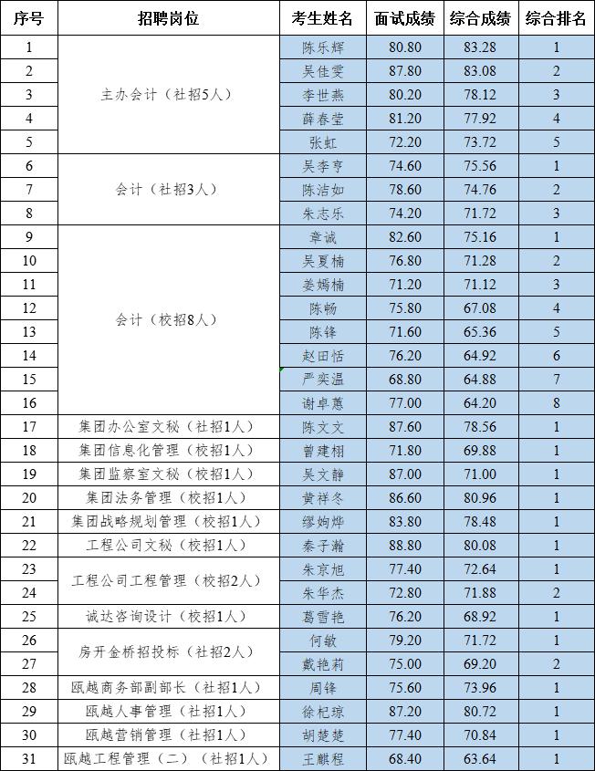 根据《温州市交通发展集团有限公司2022届高校毕业生校园招聘会(温州大学专场)暨经营人才招聘会公告》《关于开展2022年温州市交通发展集团有限公司公开招聘笔试工作的公告(二)》《温州市交通发展集团有限公司关于开展公开招聘工作人员面试的公告》等公告精神,以及相关笔试、面试结果,现将入围体检、考核(政审)人员名单公布如下: