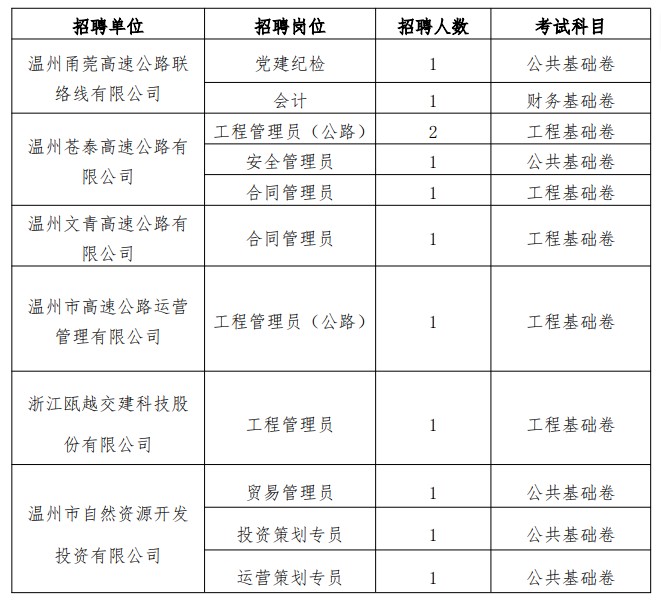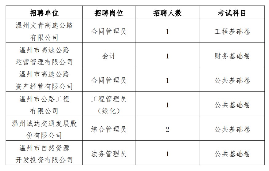 温州市交通发展集团有限公司关于开展2025年员工公开招聘笔试的公告