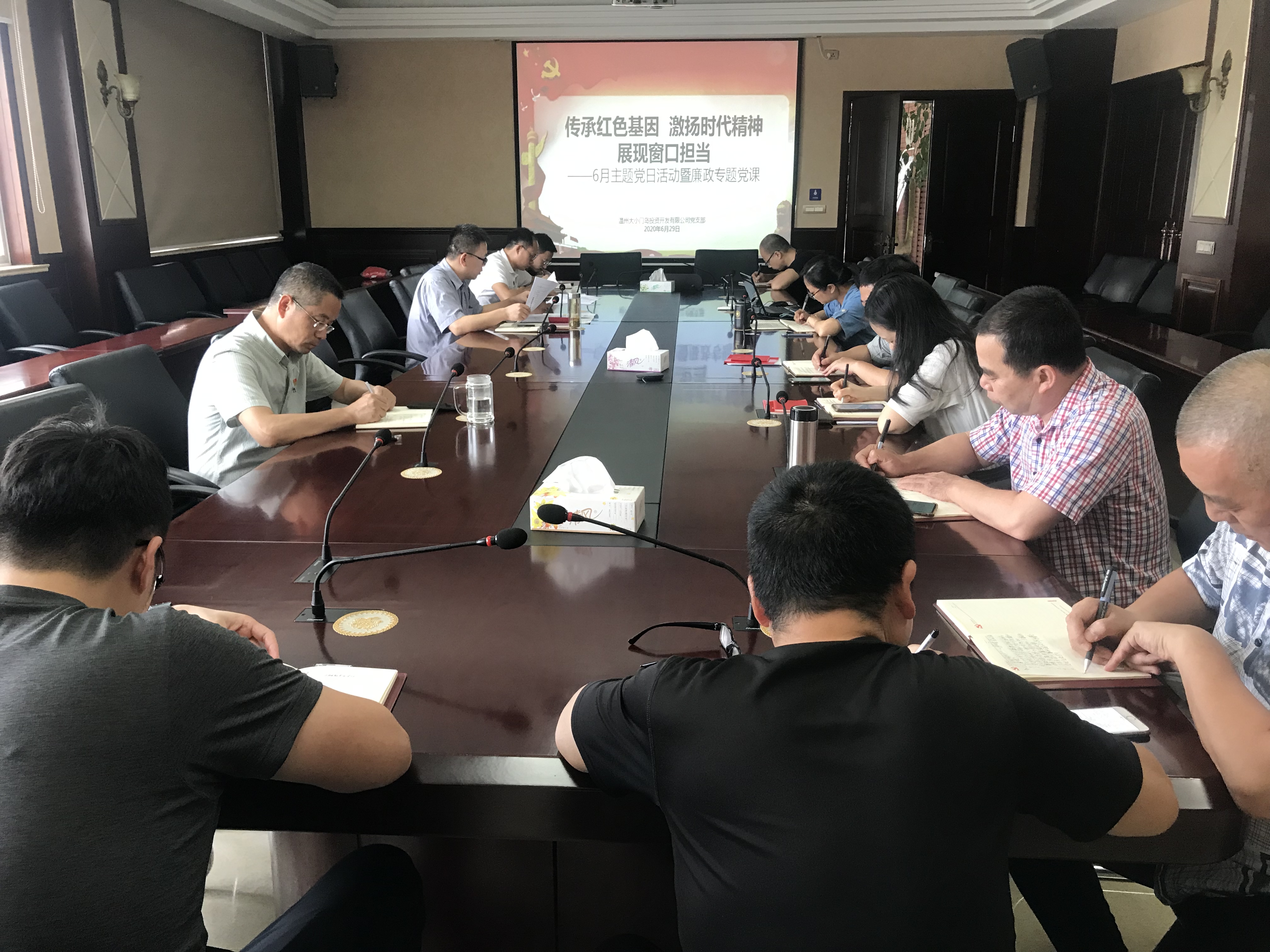 为进一步推进全面从严治党,教育引导公司全体党员加强党性修养,增强员工纪律和规矩意识,6月29日下午,大小门岛党支部开展“传承红色基因、激扬时代精神、展现窗口担当”主题党日活动暨廉政专题党课。会议由副书记王卫主持,全体党员、预备党员、积极分子参加。