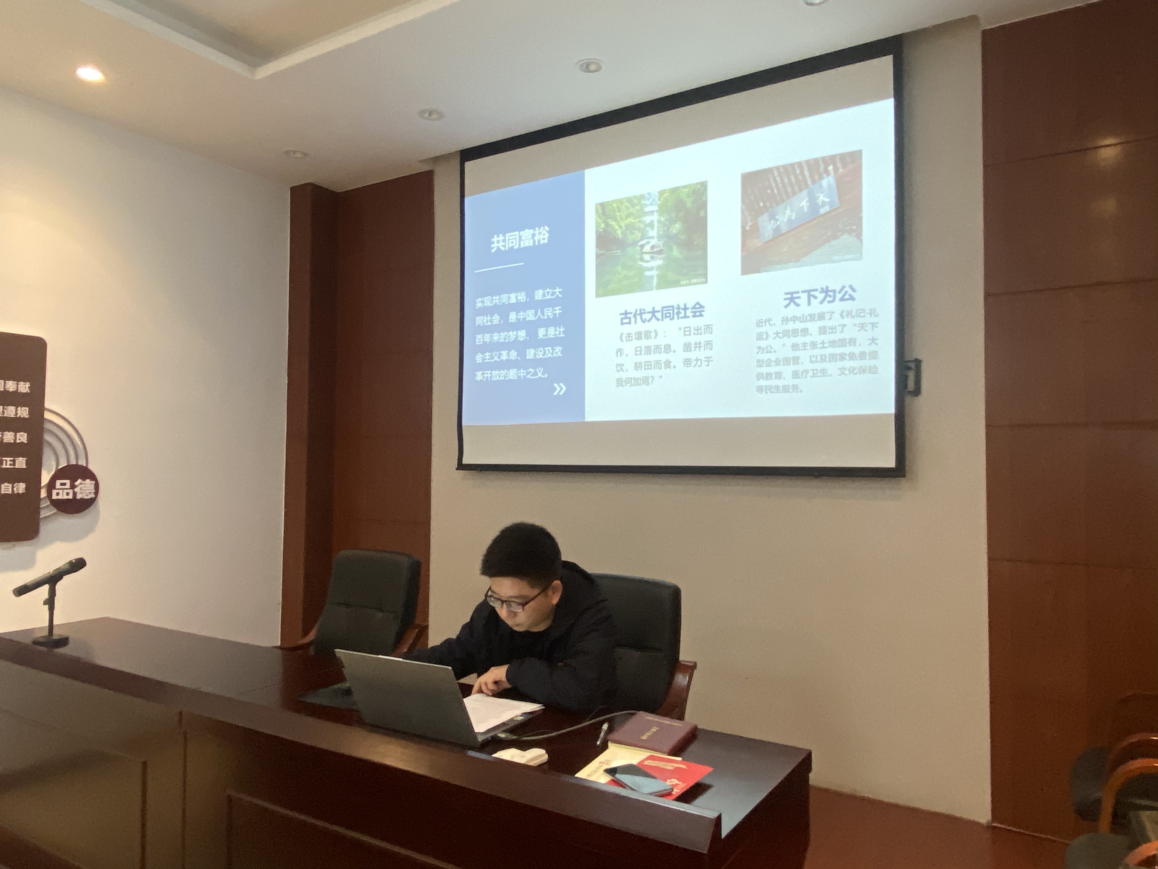 最后,支部委员叶洁友给全体党员上了《共同富裕,浙江先行》专题党课。