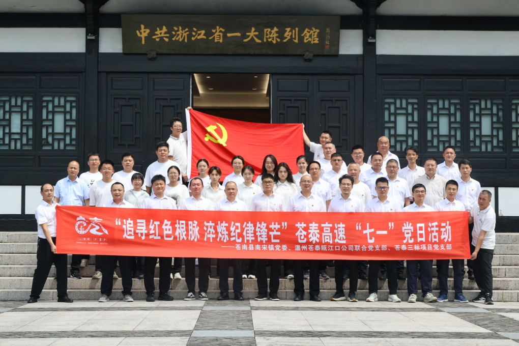 为庆祝建党104周年,温州苍泰瓯江口公司联合党支部携手苍南县南宋镇党委、苍泰项目土建3标党支部开展“追寻红色根脉,淬炼纪律锋芒”联合主题党日活动,旨在大力弘扬革命精神,传承红色基因,进一步增强党组织的凝聚力和战斗力,激励全体党员坚定理想信念、勇于担当作为。苍泰公司党员、南宋镇机关党员等共计40余人参加活动。